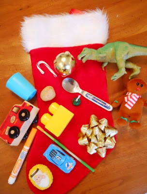 Everyone loves a game of I Spy (Simple Play Ideas) and a Christmas theme makes it even more fun. It is such a versatile game. Vocabulary can be targeted through generating clues. By using the legend at the bottom a matching activity can be set up. You could also pick two items and talk about how the items are similar or different.